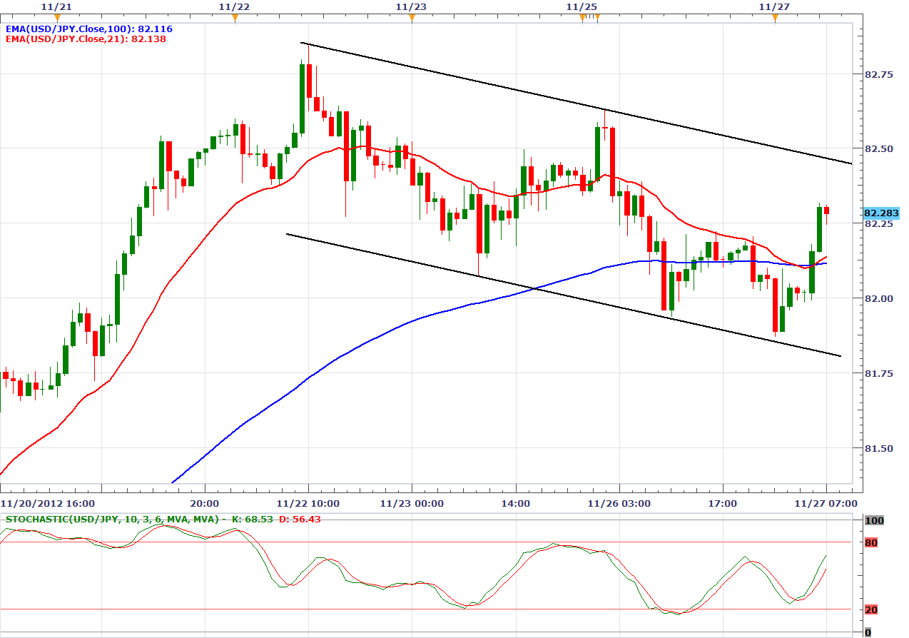 Molto bello il canale all’interno si sta muovendo il dollaro yen. Ci troviamo vicini alle aree di resistenza dinamiche passanti poco sotto 82.50, livello che offre delle buone opportunità dal punto di vista del risk reward per prendere posizionamenti a favore di yen, con stop e reverse sopra 82.65 (livello che se rotto porterebbe al tentativo di compimento di nuovi massimi relativi di periodo). I target in caso di ribassi non superano 81.90.
