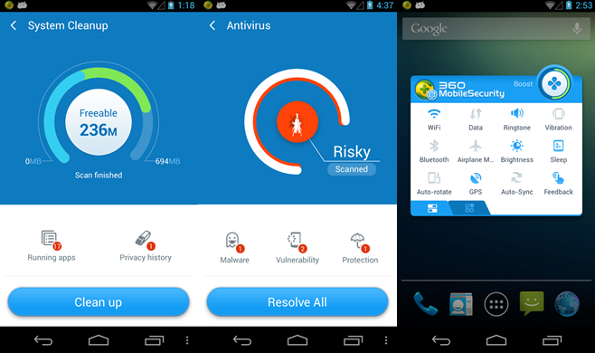 Nonostante le dimensioni ridotte e l’interfaccia semplice, pulita e intuitiva, 360 Security ha davvero molto da offrire. Non solo fornisce una ottima protezione da virus e malware, ma scansiona il vostro dispositivo alla ricerca di tutti i file superflui per garantirvi la massima salute e velocità di processione possibile. E nel caso in cui stiate per installare una applicazione nociva non mancherà di avvisarvi sule possibili conseguenze: 360 Security scansionerà infatti le vostre microSD in aggiunta alle vecchio e nuove app e alla memoria interna del dispositivo.