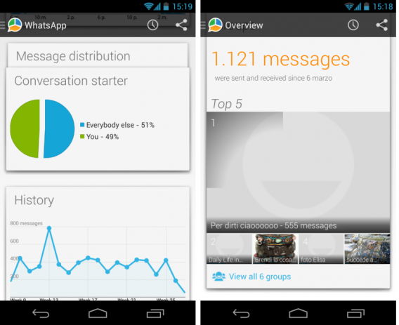 Volete sapere chi vi scrive con più costanza? Siete curiosi di sapere chi passa più tempo sul vostro profilo? Potete scaricare l’applicazione per Android e iPhone WhatsStat. L’app mostrerà attraverso semplici e intuitivi grafici compatti svariate statistiche che vi erano prima precluse. Per analisi più semplici, seguite il percorso Impostazioni > Account > Utilizzo rete.