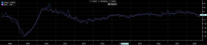 Per la misurazione relativa al mese di settembre gli analisti si aspettano un dato a -0,50 punti, anche a seguito del pessimo dato sull’attività manifatturiera di ottobre elaborato da IHS Markit, dove si è evidenziato un dato al di sotto della soglia di guardia dei 50 punti, segnando inoltre un valore minimo da tre anni e mezzo.