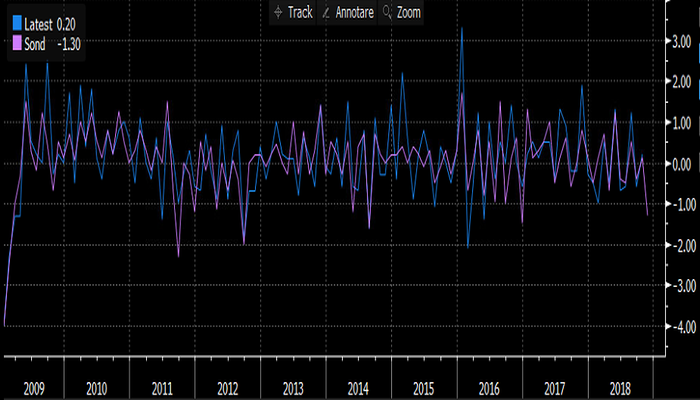 Gli analisti censiti da Bloomberg si aspettano un dato in decisa flessione al -1,3%, rispetto al precedente 0,2%. Se le attese degli esperti dovessero essere corrette o peggio, ottimistiche, il livello di tale indicatore economico tornerebbe a quelli del 31 maggio 2016. In questo caso, si avrebbe un ulteriore elemento per quantificare quanto sia grave il rallentamento del Vecchio continente.