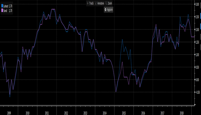 Se le stime degli esperti dovessero rivelarsi corrette, si avrebbe il secondo mese consecutivo in cui il dato registra lo stesso valore: per trovare una situazione simile si deve guardare al 2015. In generale, questa indicazione potrebbe essere considerata come positiva, in quanto il declino dell’inflazione a cui si è assistito durante il corso del 2018 sembra essersi preso una pausa.