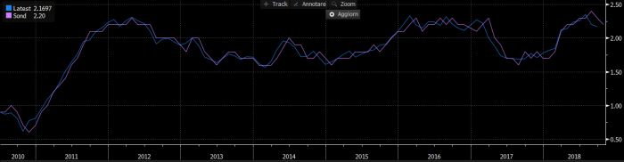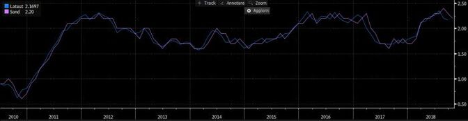 Se il dato effettivo dovesse risultare come auspicato dagli analisti sarebbe il primo dato in rialzo dopo il valore massimo registrato nella rilevazione di luglio al 2,35%. Importante notare anche che dalla rilevazione di agosto il dato effettivo è risultato sempre al di sotto delle stime degli analisti censiti da Bloomberg.