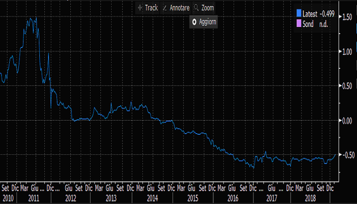 Il primo appuntamento di rilievo è direttamente nel pomeriggio, alle ore 15:00, in Francia dove verranno collocati i BTF a 3, 6 e 12 mesi. Particolare focus sulla scadenza annuale, i cui rendimenti sono arrivati ai massimi dal 24 aprile 2017, pur veleggiando al di sotto dello 0.