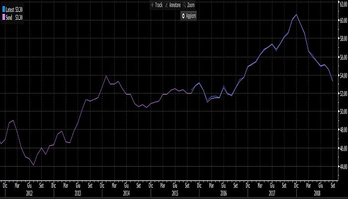 Eurozona, Markit PMI manifatturiero. Fonte: Bloomberg