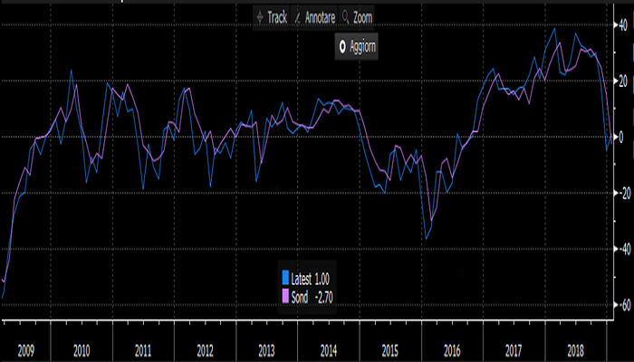 Durante dicembre 2018, il dato ha raggiunto i suoi minimi dal giugno 2018, portandosi a -5,10 punti. Il mese scorso poi, le letture hanno visto un leggero miglioramento, portandosi al di sopra della soglia critica dello 0.