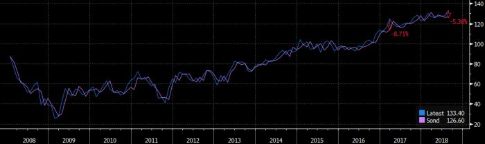 Come vediamo nel grafico la rilevazione ufficiale di agosto ha battuto il consensus di oltre 5 punti percentuali: è stata la reazione positiva più importante dell’ultimo anno e mezzo dopo quella di marzo 2017.