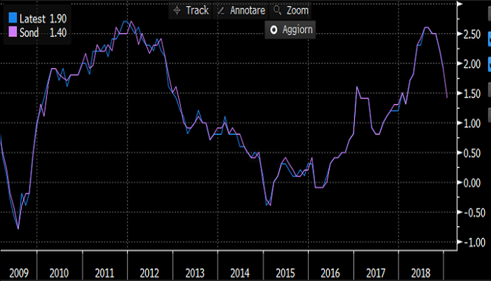 Ciò vorrebbe dire che un’altro dei maggiori Paesi dell’Eurozona si sta allontanando in maniera importante dai target inflattivi del 2% fissati dall’istituto centrale guidato da Mario Draghi. Dall’agosto 2018, l’indicatore ha iniziato un forte andamento discendente. Le stime degli esperti censiti da Bloomberg inoltre hanno spesso trovato conferma al momento delle letture del dato.