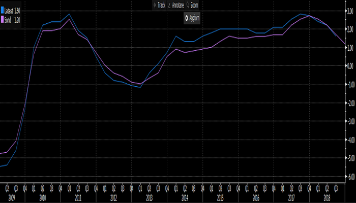 Per gli ultimi tre mesi del 2018, gli analisti si attendono una crescita del prodotto interno lordo al -0,1%, in linea con il precedente trimestre. Il dato annualizzato invece (preliminare) dovrebbe passare dall’1,6% all’1,2%.