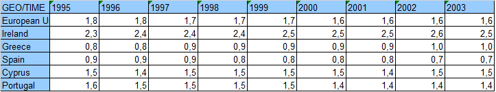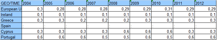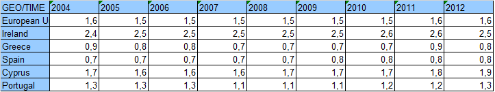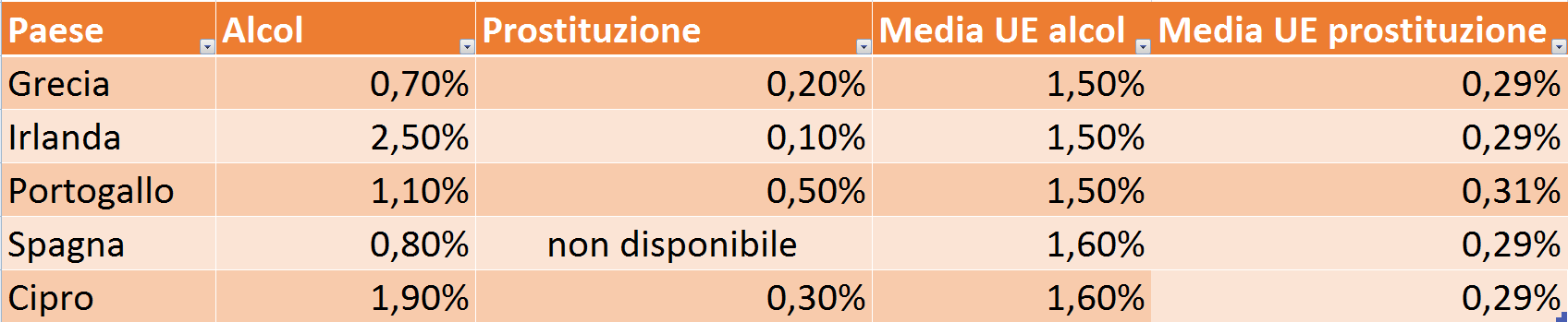Tabella 1: consumo di alcol e prostituzione per i Pigs+Cipro e media UE nell’anno precedente l’inizio del programma di aggiustamento.