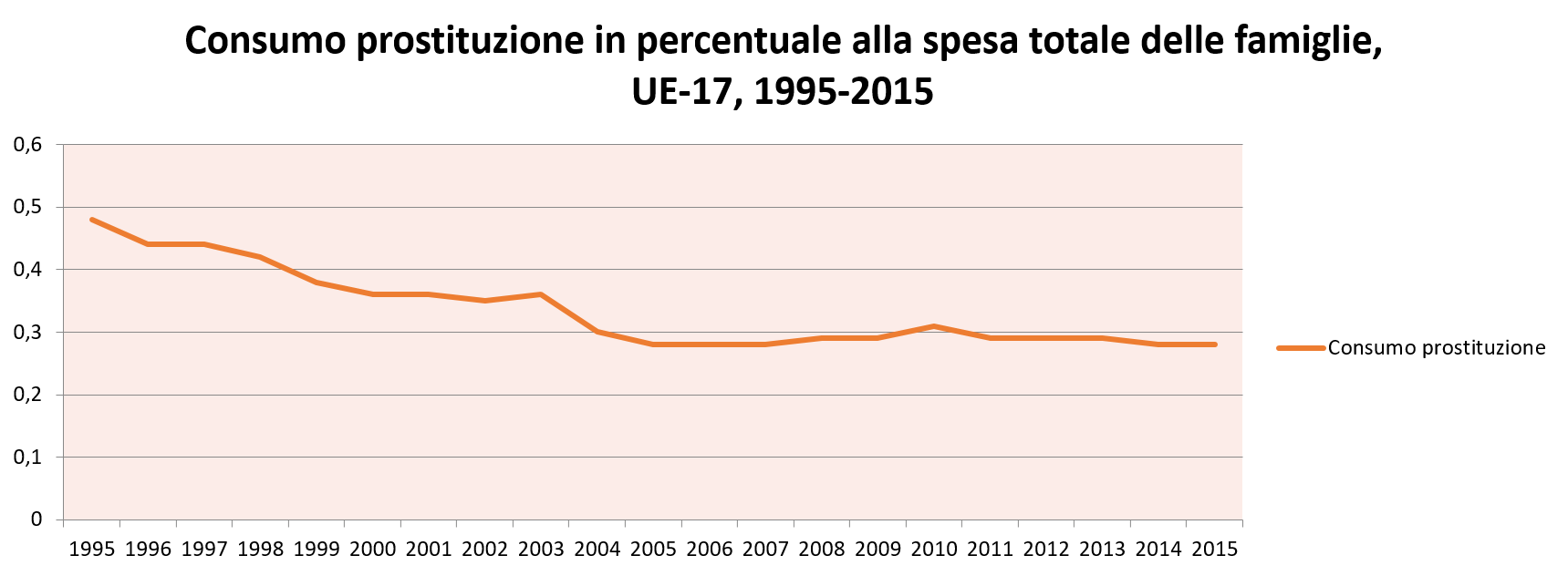 Tabella 3: consumo di prostituzione in percentuale al totale della spesa delle famiglie (1995-2012).