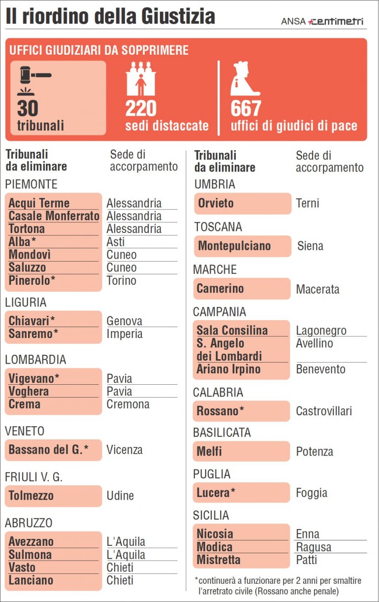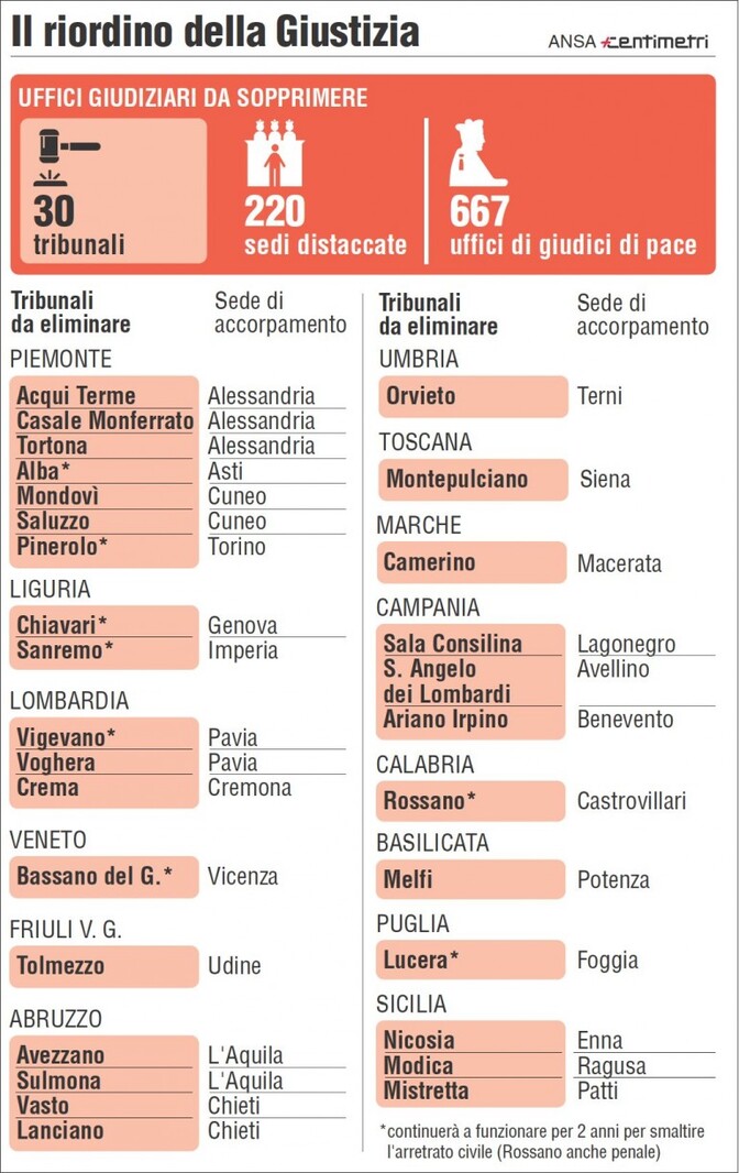 - chiusura di 30 tribunali;