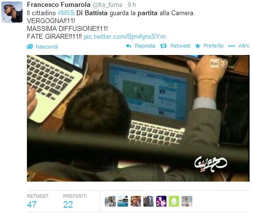 Di Battista guarda le partite sul computer alla Camera, sul web scoppia la polemica.