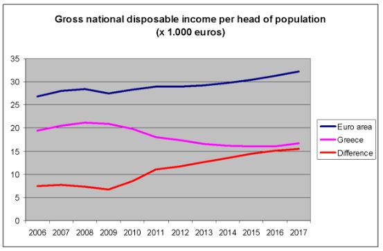 - tra il reddito medio dei greci e quello dei cittadini dell’area euro;