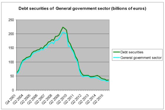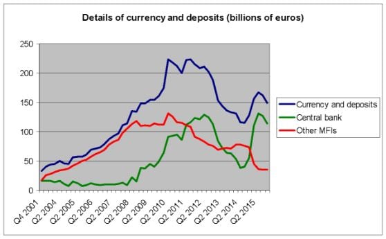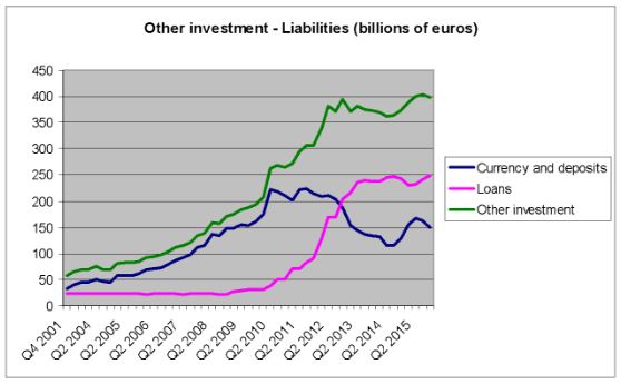 La voce “currency and deposits” fa invece riferimento a debiti della banca centrale greca e delle banche greche.