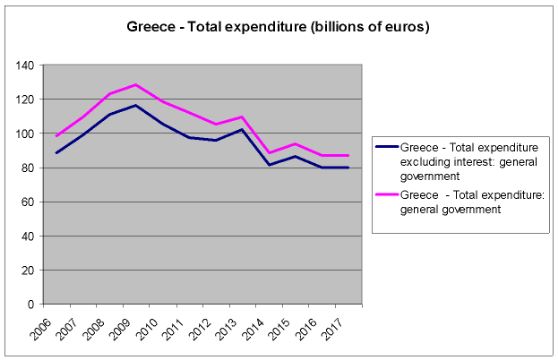 Dai grafici seguenti si vedrà che, nonostante la Grecia abbia seguito i pesanti diktat imposti ed abbassato significativamente la spesa pubblica, ha visto peggiorare il divario: