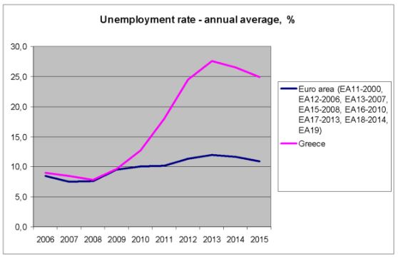 - tra la disoccupazione in Grecia e quella nell’eurozona.