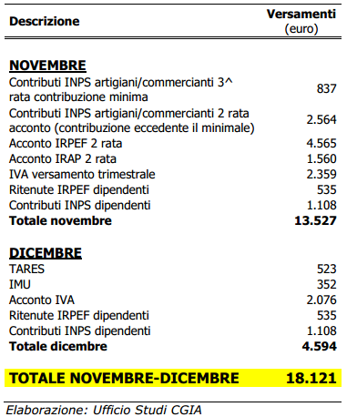 Ecco la stangata complessiva calcolata dalla CGIA di Mestre: