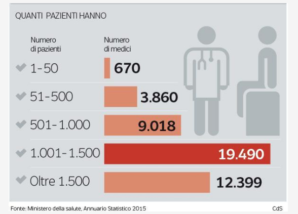 Di questi, circa 15.000 saranno medici di famiglia. Ecco perché al 2020 circa 14 milioni di italiani rischiano di restare senza medico (considerando una media di 1.000 abitanti per medico di base).