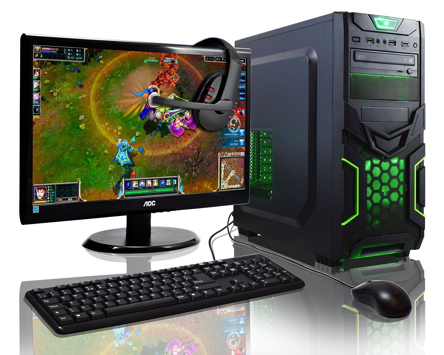 Non c’è gaming senza un ottimo processore, uno schermo adeguato, una tastiera e un mouse. Ecco tutto insieme in un pacchetto che comprende un monitor 1080p da 21,5 pollici, tastiera e mouse e un processore AMD A6-6400K 4.1GHz dual-core Radeon HD 8470D grafica, con USB 3.0, alimentazione 500 W 1 TB hard disk, RAM da 8 GB, unità 24 x DVD-RW, Wifi.
