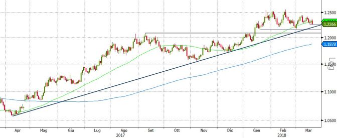 Dal punto di vista tecnico infatti 1,2160 è un supporto statico intermedio fondamentale, ereditato dai minimi intraday del 18 gennaio e 1° marzo 2018. Hewson però ha rassicurato, “finché il cambio si mantiene sopra 1,2160 non vedo alterazioni significative dell’attuale quadro”. E difatti sopra questo livello si può dire che il trading range tra 1,2150 e 1,2450 rimarrebbe intatto.