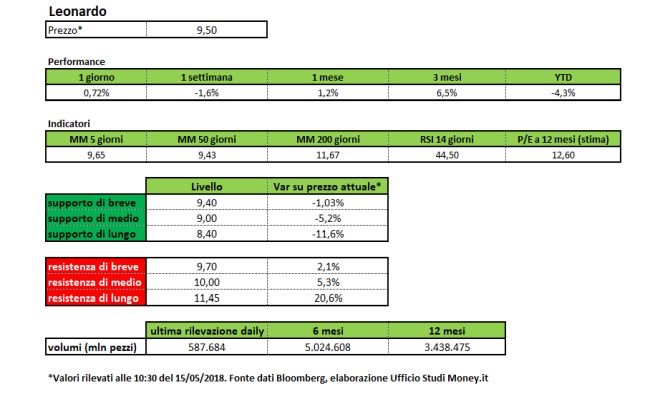 Home > Altro > Archivio > Analisi azioni italiane: Leonardo risente del contatto con resistenza 10 euro
