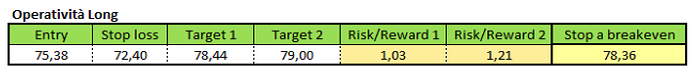 Occorre quindi un pronto recupero di 75,37 dollari, con i corsi che dovrebbero andare ad effettuare una chiusura al di sopra di esso prima di poter eventualmente costruire un rimbalzo fino zona massimi annuali.
