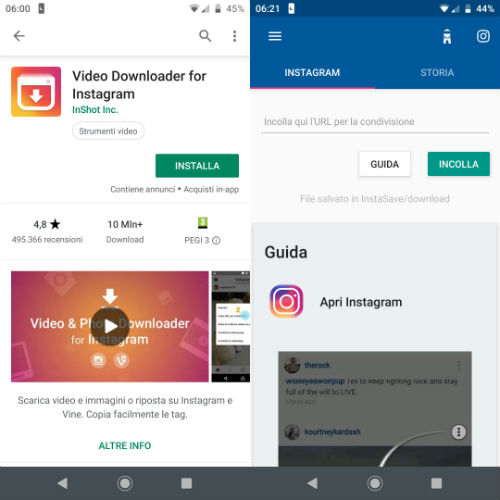 Di seguito spiegheremo come scaricare video Instagram, illustrando il funzionamento delle app per i dispositivi Android e iOS. Prenderemo in esame soltanto applicazioni gratuite. Per avere una panoramica generale sull’argomento, suggeriamo fin da ora la lettura della guida sul download di foto, video e dirette streaming da Instagram.