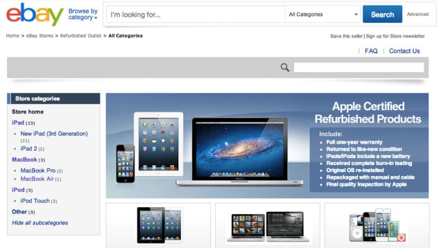 Senza preavviso nell’ottobre 2012 compariva su ebay lo store Refurbished_Outlet, che metteva in vendita prodotti Apple certificati ad almeno 100$ in meno rispetto allo store ufficiale. Dopo il prevedibile sold out in tempi brevissimi, si è persa ogni traccia del rivenditore online. Dopo qualche mese si venne a sapere che lo store era autorizzato dalla Apple Inc. e costituiva un primo test a basso profilo in vista di un’apertura ufficiale e in larga scala su ebay.
