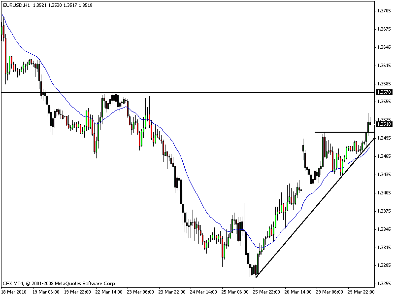 Messo momentaneamente da parte il caso Grecia (che offrirà un bond a 7 anni al 6% rispetto al 3,35% dei titoli governativi tedeschi di pari duration) e appurata la buona sostenibilità del trend rialzista sull’equity (stamattina Tokyo ha chiuso con un +1,1% tornando ormai sui livelli di ottobre 2008), sul Forex il terreno è diventato molto fertile per Euro e Sterlina, oltre alle classiche commodity currencies (Aussie e Kiwi, con quest’ultimo ancora un po’ in ritardo). L’Euro/Dollaro ha effettuato un breakout deciso di area 1,35 dopo qualche tentennamento e ora sembra potrsi finalmente dirigere verso 1,3570. L’Euro/Yen ha, invece, superato con decisione l’area di resistenza di 125,00-125,20, e ora potrebbe diventare interessante prendere una posizione long con target direttamente verso i 127 (con un occhio sempre a cosa fa l’equity europeo).