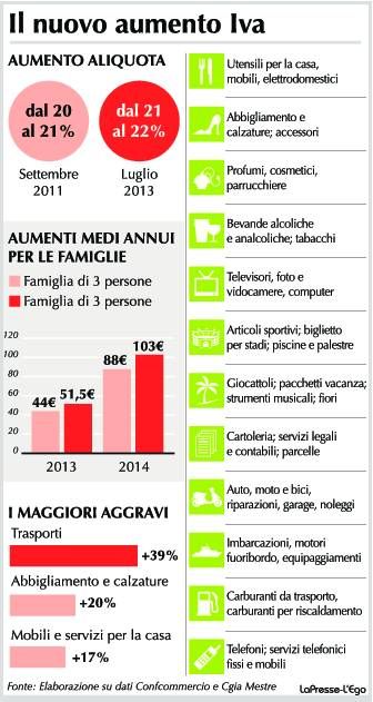 “Se l’aumento previsto dal prossimo mese di ottobre non verrà scongiurato, i consumatori italiani si troveranno a subire l’aliquota Iva ordinaria più elevata tra tutti i principali paesi dell’area dell’euro, con il pericolo che questa decisione penalizzi ancor più la domanda interna che in questi ultimi anni ha subito delle contrazioni pesantissime. Si pensi che nel 2012 i consumi delle famiglie italiane sono crollati del 4,2% e quelli relativi ai beni durevoli quasi del 13%”.