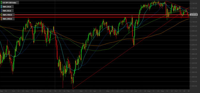 Giornata di acquisti a Wall Street dopo le forti vendite della scorsa settimana. I prezzi sono di nuovo al test del supporto di lungo periodo in area 2120 punti.