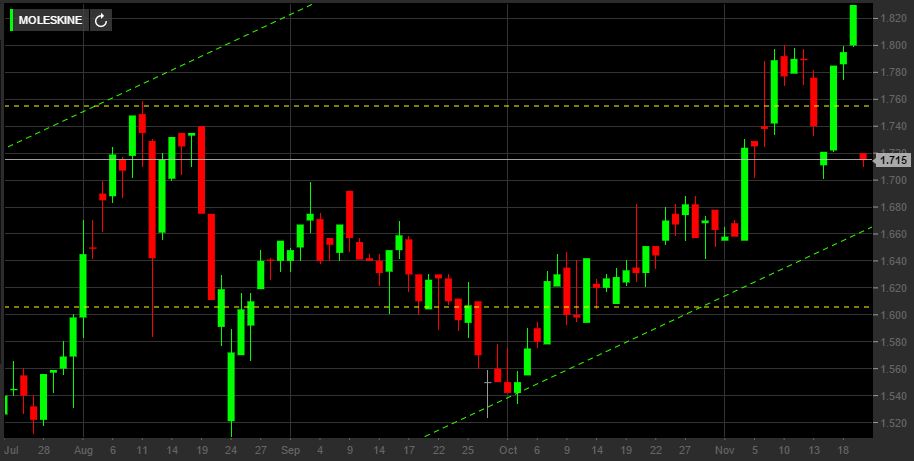 Avvio di sessione pessimo per Moleskine SpA, la società milanese famosa per i suoi taccuini e le sue agende apre la giornata in Borsa perdendo il 6,30% del suo valore con un tonfo che segue la notizia dell’accelerated bookbuilding già avviato.