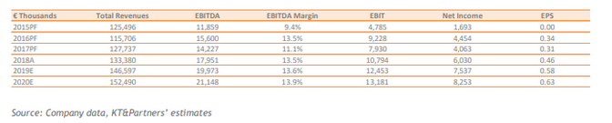 Per questo, KT&Partners ha rivisto leggermente al ribasso le proprie stime sulla top line di Neodecortech, con ricavi previsti a 146,6 milioni nel 2019 e 152,5 milioni nel 2020.