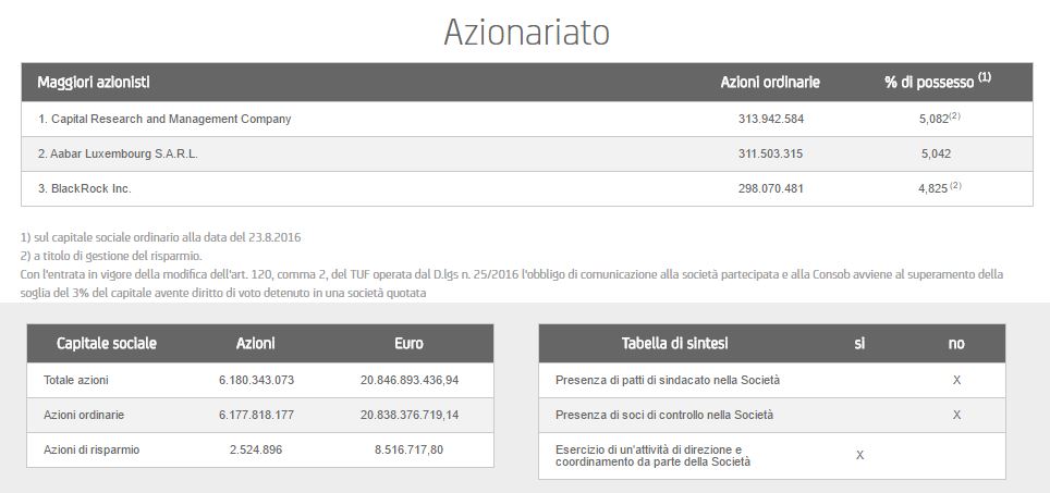 Intanto, dagli aggiornamenti Consob, emergono novità per quanto riguarda l’azionariato Unicredit. Dal 17 agosto la società di investimenti statunitense Capital Research and Management Company ha il 5,082% di Unicredit in gestione discrezionale del risparmio, diventando così il primo azionista dell’istituto. Superato il socio Aabar Luxembourg S.A.R.L., che possiede il 5,042%.