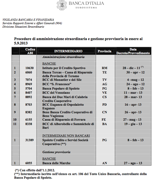 Da inizio 2013 sono state commissariate ben 8 banche italiane, ultima della lista la Banca Marche.