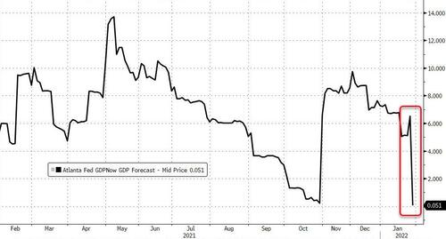 il quale incarna alla perfezione l’ovvia ragione per cui il mercato ha bellamente ignorato le ennesime minacce a vuoto di Jerome Powell sull’aumento a raffica dei tassi. Nel giorno in cui l’indicatore inflazionistico preferito proprio dalla Fed, il Core PCE Deflator, saliva al massimo dall’aprile 1983 e l’indice delle spese personali scendeva per la prima volta dal febbraio 2021, ecco che il tracciatore del Pil in tempo reale della Fed di Atlanta (GDPNow) inviavo lo shock: l’economia Usa è già alle soglie della contrazione. La rilevazione del 28 gennaio parla chiaro: la crescita per il primo trimestre di quest’anno è allo 0,1%, un tracollo dal 5,6% di solo dieci giorni fa e contro un consensus medio del 3,3%.
