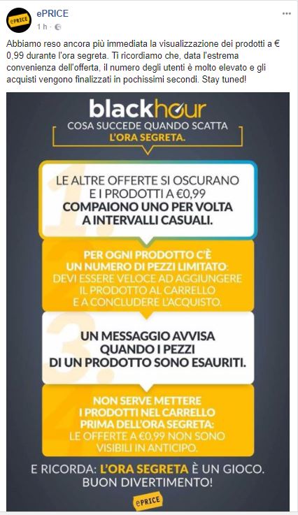 Il team di ePrice ha deciso anche di chiarire, in modo semplice, come funzionano le offerte della Black Hour e come fare per vedere gli articoli a 0.99€: