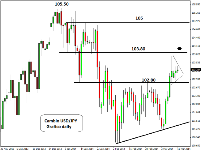 Il tasso di cambio dollaro/yen, che venerdì è salito fino a 103,76 ai massimi da oltre un mese, sta evidenziando una fase di consolidamento con bassa volatilità che potrebbe risolversi nelle prossime ore o comunque entro questa settimana. Il cambio sembra aver trovato una buona zona di supporto tra 103 e 102,80, per cui è atteso un incremento della pressione dei compratori che dovrebbe favorire un nuovo boom dei prezzi verso 105 – 105,50. Il ritorno della negatività si avrebbe solo con una chiusura giornaliera inferiore a 102,50.