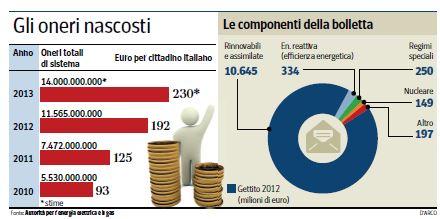 Sergio Rizzo del Corriere, che ha condotto un’inchiesta sui costi nascosti nella bolletta elettrica, ha spiegato infatti: