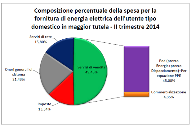 - 253 euro (pari al 49,43% del totale della bolletta) per i costi di approvvigionamento dell’energia e commercializzazione al dettaglio;