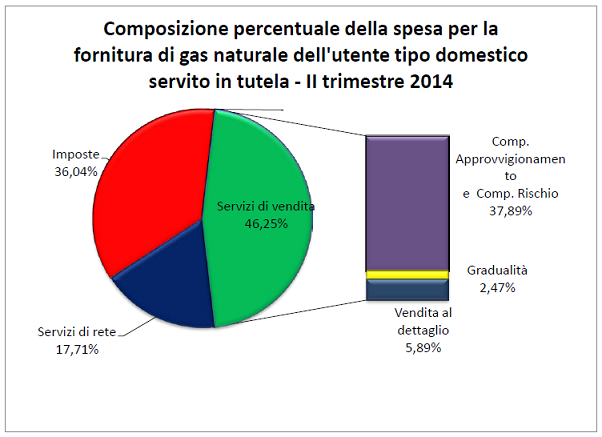 - 440,28 euro (pari al 37,89% della bolletta) per l’approvvigionamento del gas naturale e per le attività connesse;