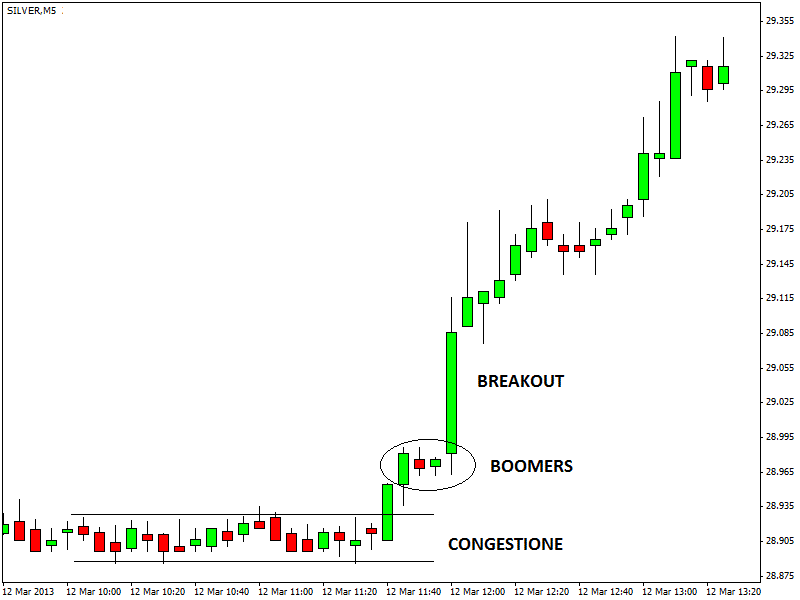 Da un punto di vista tecnico si forma un boomers, ovvero un pattern di continuazione del trend formato da due candele inside consecutive. Il breakout rialzista del boomers consente ai prezzi di continuare a salire con decisione, offrendo allo scalper e al day-trader una buona opportunità long intraday a basso rischio.