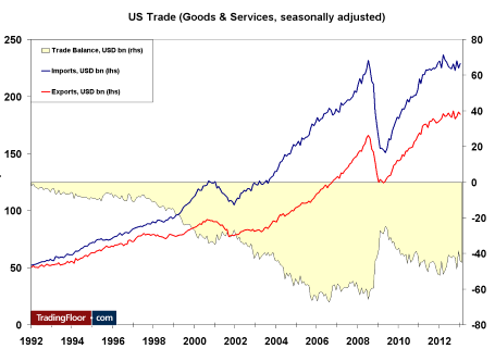 Secondo gli analisti, il deficit della bilancia dovrebbe rimanere invariato attorno ai 45 miliardi di Dollari USA, contro i 44.45 miliardi di gennaio. Deficit più ampi sarebbero negativi per il Dollaro visto che commercio e crescita sono generalmente correlati