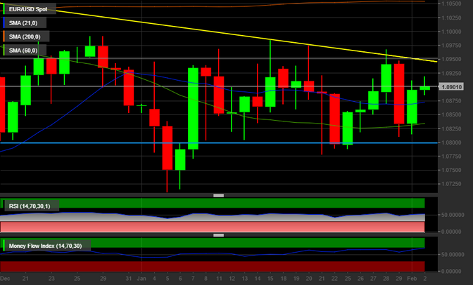 Il cambio Euro-Dollaro nella sessione di scambi di ieri ha ritrovato vigore, salendo fino al massimo intraday a quota 1,0948 per poi chiudere a 1,0894. I market mover di ieri relativi all’attività manifatturiera di Eurozona e USA hanno spinto a rialzo le quotazioni dell’Euro. Infatti, il PMI del Vecchio Continente è risultato in linea con le attese a 52,3, mostrando una fase espansiva dell’attività manifatturiera europea.