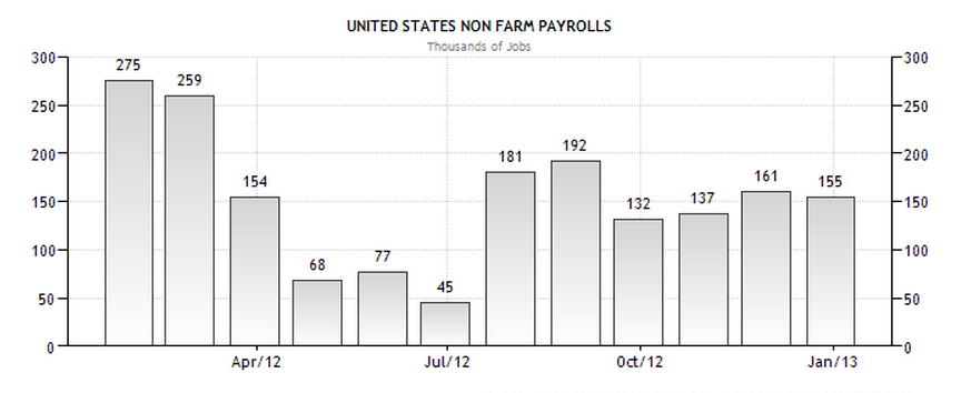 Il Bureau of Labor Statistics rilascerà oggi il famoso indicatore sull’occupazione statunitense detto "Non-Farm Payrolls". Questo indicatore misura il numero di persone che durante il mese di riferimento (gennaio) hanno trovato impiego, ad eccezione degli operai del settore agricolo, gli impiegati governativi e quelli delle organizzazioni no-profit.