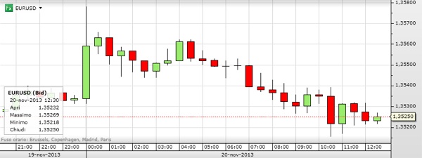 Il cambio Euro/Dollaro ha registrato qualche perdita durante la giornata di oggi. Sin dalle prime ore, con l’appuntamento con Ben Bernanke, l’Euro/Dollaro è schizzato a 1.3578 per poi correggere gradualmente durante la nottata e pareggiare definitivamente tutti i guadagni durante l’avvio della sessione Europea.
