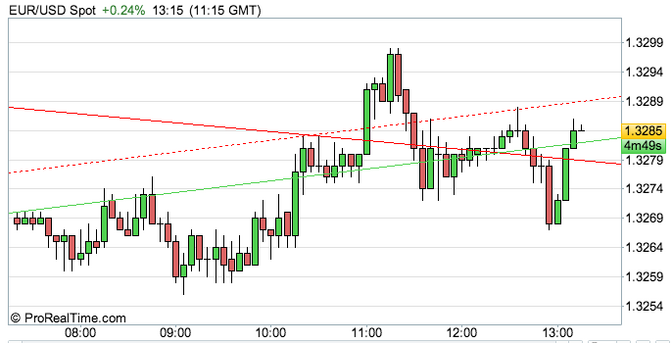 Durante la sessione Asiatica il cambio Euro/Dollaro si è portato al rialzo arrivando a 1.3292, per poi consolidarsi a 1.3267. Durante la sessione Europea il trading è rimasto pressoché invariato e al momento della scrittura è scambiato a 1.3285.