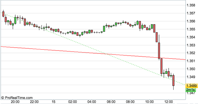 Come accennato, l’indice ZEW ha riportato un miglioramento per le aspettative economiche in Germania e nell’Eurozona, ma la pubblicazione non ha avuto grande impatto sulla price action. Anzi dalle 10:30 alle 11:00 (orario della pubblicazione) il cambio si è avventurato con una serie di lunghe candele ribassiste che hanno spinto il trading dalla metà della zona 1.35 ad un minimo di 1.3499.