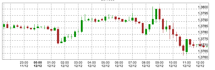 Il trading sul cambio Euro/Dollaro continua con un certo tenore durante la mattinata di questo giovedì 12 dicembre 2013, una giornata ricca di release economiche.